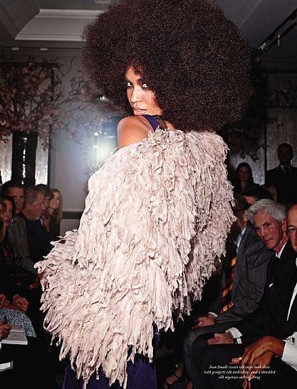 …okay, i have a coat just like this that i bought in a thrift store when i was 17. it was made in paris by some now defunct atelier. it’s in pristine condition and i mean to rock that coat when i get back to l.a. (minus the afro wig). i’ll be sure to post accessorized images to prove my point! this little number is from the tom ford s/s11 show and i’m sure that at $15, mine was the far better deal! check out my image on the right. she’s totally gankin’ my moves! š apparently the show is still in sneak peek mode with only a few images available online. lovely though it may be, i wouldn’t call it earth shattering and i find his menswear line far more compelling…