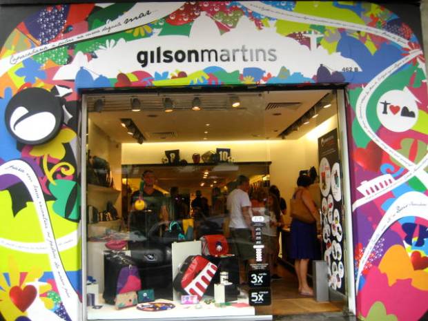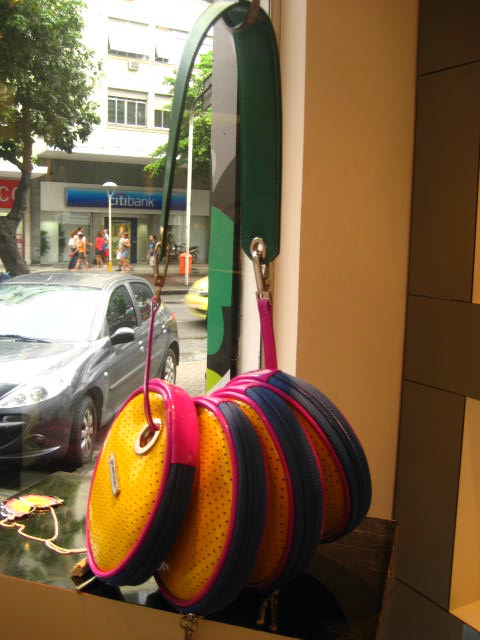…one of the highlights of rio was being able to pop into gilson martins in ipanema! like so many shops in sao paolo, melissa’s for instance, gilson’s follows the trend of bringing the inside of the store out with a bright, artfully painted façade. this shop is a rio based business who’s slogan “take brasil with you!” is apparent in all of their bags. a revolutionary in contemporary design, gilson uses recycled vinyl to make pop kitsch bags showcasing the culture of copacabana’s mosaic sidewalks, sugar loaf mountain, christ the redeemer and lapa with quirky style and unique form. gilson’s bags are collectibles and have been displayed at the louvre, the galleries lafayette, the cannes film festival, the 2006 world cup in berlin and are also carried in new york’s museum of modern art.