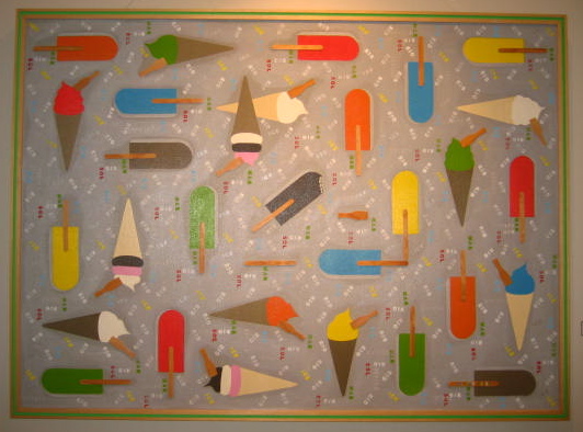 the staff were of course, all young and beautiful and extremely helpful with regards to the product and two minutes after i made my purchase, the shop was overrun with customers. seeking a less crowded spot whilst i waited for my partner to transact his business, i popped into the gallery in the back which was just as compelling as the front. i’m seeing a theme in these painting’s reminiscent of the book “information is beautiful” by david mccandless. the ice cream painting would make a great print: