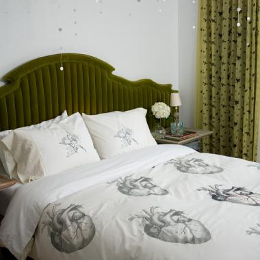 not for everyone but definitely noteworthy is the anatomically correct heart printed duvet set. like something right out of an edgar allen poe tale, this bedding is darkly charming and alluring provided there’s nothing hidden beneath the floorboards!