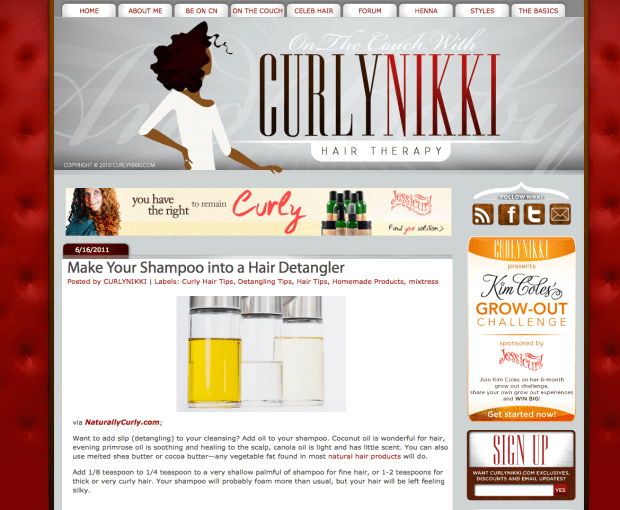 what it is: curly nikki actually holds a master in psychology and started her blog as an “online hair therapy session.”