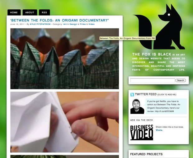 why i like it: it’s inspiring and connects me to visually compelling projects, quite a few by independent artists who are not always highlighted media darlings. great imagery!