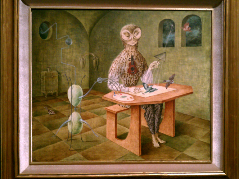 the above work of art was created by remedios varo, one of my all time favorite artists of the movement. “celestial pabulum” is one of her featured works in the exhibit and the detail in this like much of her work is exquisite. also featured is the art of dorothea tanning, sylvia fein, kay sage and leonora carrington. aside from kahlo, most of my interaction with these works has been via dim photographs in art books or lo res images on the internet. nothing takes the place of seeing them in the size and perspective they were meant to be seen.