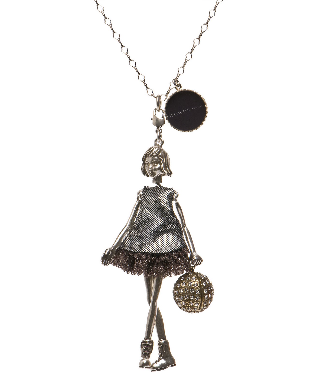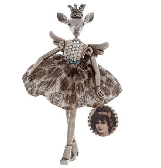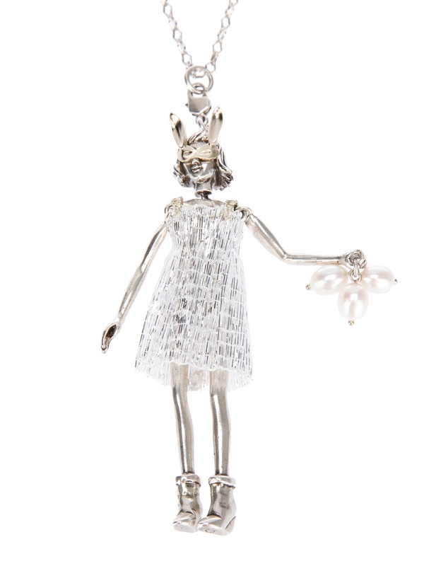 these little poppet pendants are the delicious work of parisian artist servane gaxotte. her whimsical designs are beautifully crafted and fully detailed with couture fashions. each figure is a delightful mix of anthropomorphic animals, bits of beautiful fabric and bejeweled touches for a one of a kind, darkly tinged, fairy tale effect. very distinct in personality, the only difficulty would be in deciding upon which one is right for you!