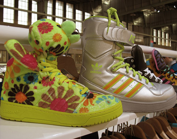 i’m having flashbacks of my rave days in the early 90’s and i’m lovin’ the new adidas offerings of jeremy scott! whether you would wear them or not is besides the point. what does matter is the outside of the box thinking that makes these an iconic phenom.