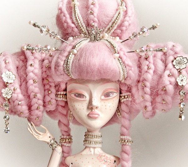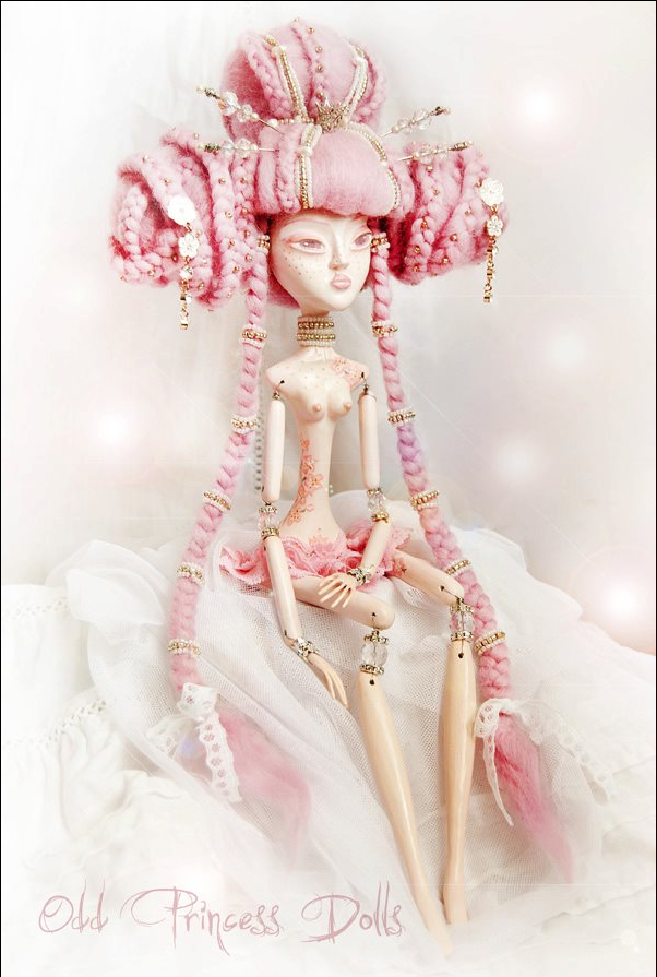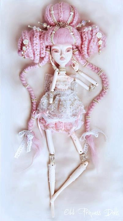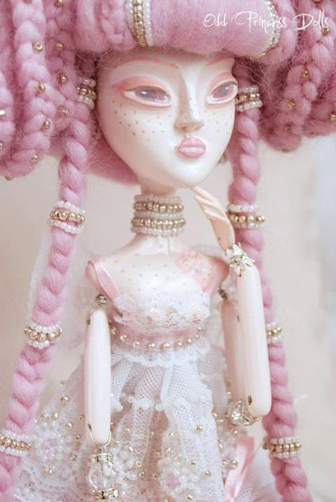 nina yeghiazaryan of odd princess dolls, is a fantastic artist whose work i found while browsing etsy! hailing from yerevan, armenia, her delicately jointed dolls harken back to the victorian era and are infused with delicate details of beading, vintage lace, intricate costumes and paint. each doll is fabricated by hand in clay or papier mache using an armature, sanded for a smooth finish and lightly coated in a matte varnish. the results are breathtaking, one of a kind pieces of art.
