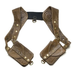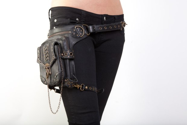 too rich for your wallet? never fear, you can get the look from these indy designers. i mentioned earlier my own holster harness which combines that same tough look but ups the functionality with pockets for carrying cellphone, lip gloss, money and so forth and at only $195, it won’t break the bank: