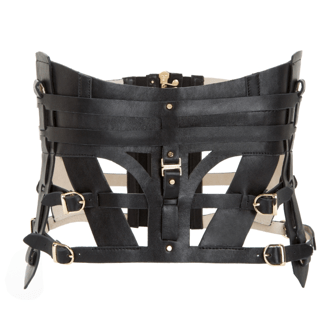 i’ve gotta give credit where credit is due! the new fall 2012 accessories from herve leger are all that and then some! i bought my first holster harness a few years ago and since then, i’ve been ever on the lookout for more. these perhaps, aren’t as functional but in the looks department, they take the most feminine of dresses and edge them up to kick ass status. i think anyone would think twice before trying to confront a woman strapped into one of these babies and that ‘don’t fuck with me’ look doesn’t come cheap either. these little numbers will set you back $1350 to $2200 (a fur trimmed version not shown here). stay with me though because there are cheaper options!