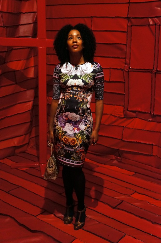 this was an amazing reproduction of a small church with pews, podium, crucifix and even windows made out of blanket stitched red vinyl. to be in the middle of this installation was compelling but it was a shame that the artist didn’t push further and design lighting for it. or rather if he did, i perhaps missed it and would have expected a much moodier atmosphere…