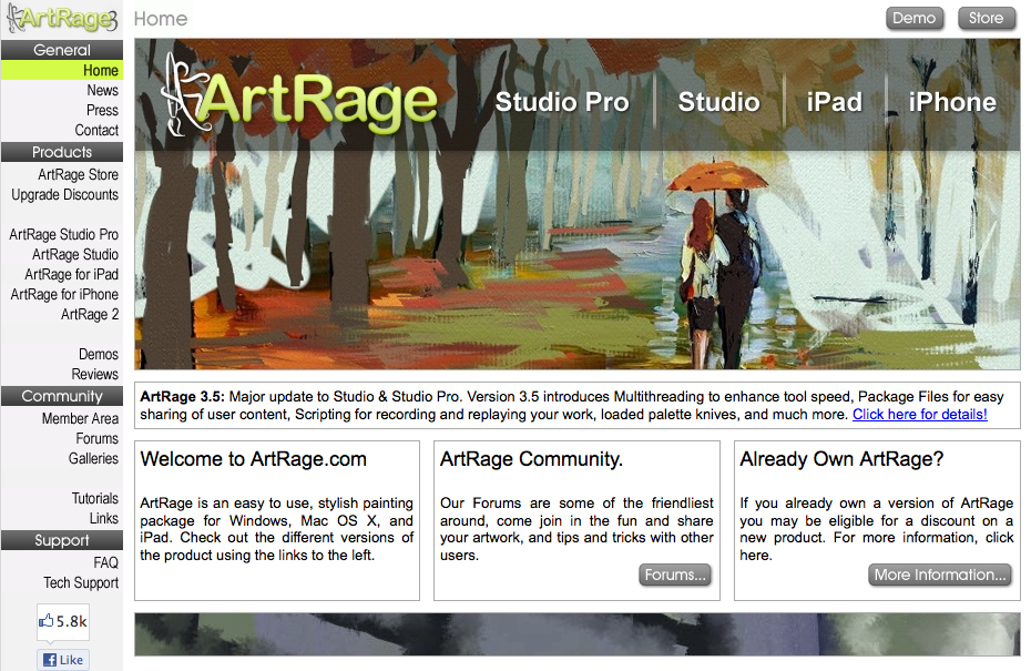 having primarily used illustrator, photoshop and in the past, corel paint for all of my illustration needs, i was quite pleased to discover artrage. surprisingly robust for such an inexpensive piece of software, artrage provides an intuitive interface made for illustrators and painters. only $59.50 for studio pro, this, coupled with any cintiq tablet, makes for realistic pencil, chalk, ink and brush strokes.