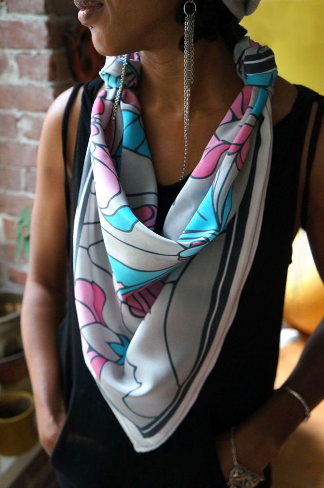 …are here at last! a few posts ago i was contemplating the idea of my designs on silk but hadn’t been all that happy with the results. well, i gave it another try and lo and behold! the silk crepe de chine has a look that is luxurious and feminine with a light hand. it’s a great weight for a summer scarf and will glam up crisp clean shorts or dresses. that being said, i’m excited to now offer scarves in my shop!
