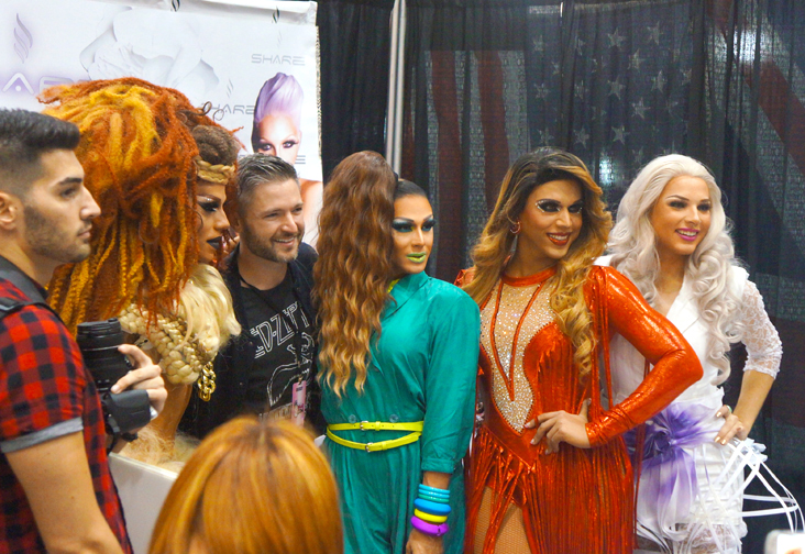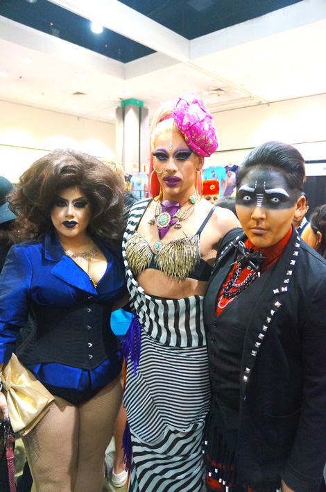It wasn’t difficult to pull together a little entourage for DragCon and together, we topped up with champagne before stepping into wonderland. The West Hall was packed with members and supporters of the rainbow tribe picking over merchandise, lining up for autographs, mugging for the camera and mostly gathering around their favorite celebrity queens for photo ops.
