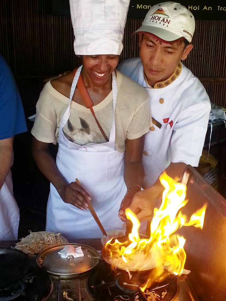 One of THE best things about Hoi An is their amazing tailoring community which can crank out a dress or suit in less than 24 hours! Shown here is the dress I had made which has pockets, is fully lined and includes a layer of tulle. The price? Only $70 and it fits like a dream! They are keeping my measurements on file so I can send them my fabric and have other items made. Oh and the hanging pod chair? Also made in Vietnam!